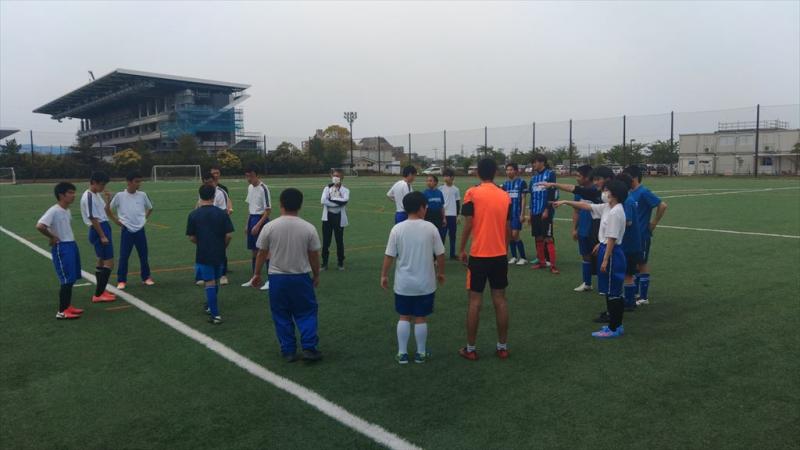 本校サッカー部と小松特別支援学校、卒業生の社会人チームとの合同練習を行いました。