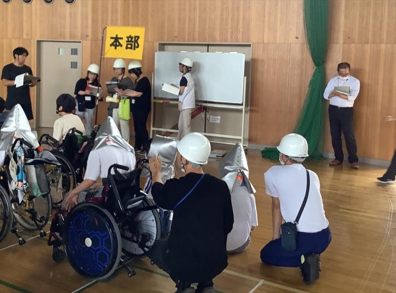 児童生徒は、事前学習で学校にいる際に地震が発生した際の避難方法や過ごし方等について学んだことを踏まえて、児童生徒は、地震発生の放送聞き、一次避難として教室の机の下へもぐったり、防災頭巾等で頭部を守ったりして、落ち着いて安全行動をとることや、災害の状況に応じ先生の指示に従って柔軟に行動することができました。地震が起きた際には、防火扉が閉まる、怪我人が出て救護が必要になる、ガラスが割れる等の想定に、どの児童生徒も1月に発生した地震の教訓も踏まえながら真剣に臨んでいました。