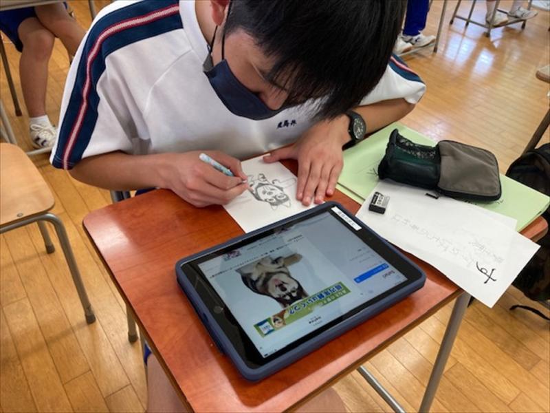 読み札を作って文字を書く練習をしたり、タブレットを使ってインターネット上から文字札にあった絵を探し、絵札を作ったりしました。タブレットでは絵を拡大して加工できるので、細部まで確認しながら絵を描いて素敵なかるたが仕上がりました。