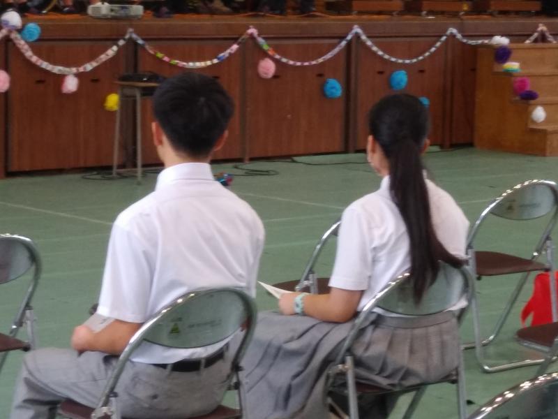 「文化祭に招待されて、展示作業や舞台発表を鑑賞し、特に舞台発表の会場が一体となって楽しんでいる感じがして、自分も楽しめました。ありがとうございました。」 書記 長田