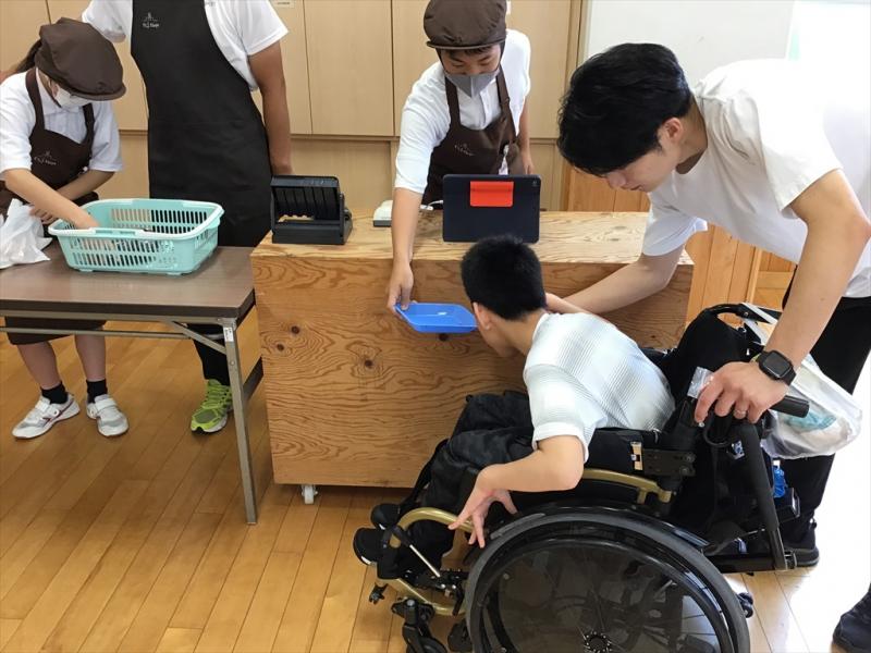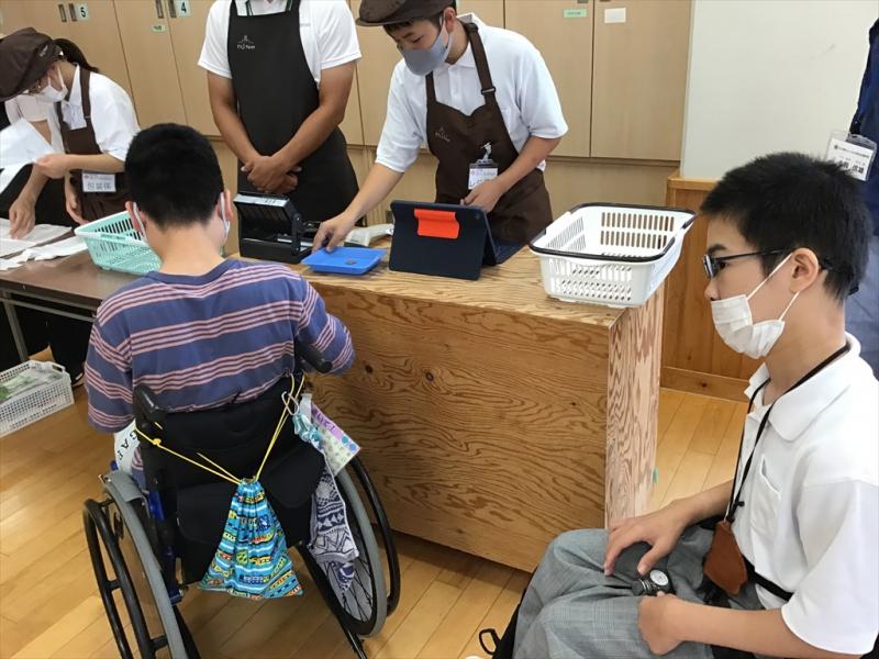 生活単元学習の授業でコンビニやドラッグストアに買い物に行った経験を活かしていました。