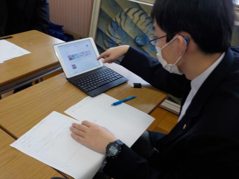 午前中は2年生の生徒3名が美術の授業に参加し、アニメーションの手法に関して学習を行いました。自分の好きなアニメーションを発表し合う等の活動を通して交流しました。