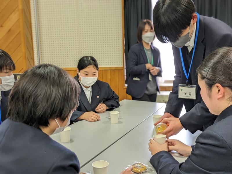 最後はともに学習し商品開発した「ゴロゴロ金ドーナツ」とジュースで乾杯をして、グループで楽しく歓談しました。いしかわの生徒からは「友達もできました。また、交流したいです。」向陽の生徒からは「最初は初めて会う人とどう接したらよいか、緊張もするし交流は不安だった。だけど、交流することでお互いの気持ちを知ることができた。また、スイーツを一緒に販売することで良い経験ができた。」という感想がありました。
