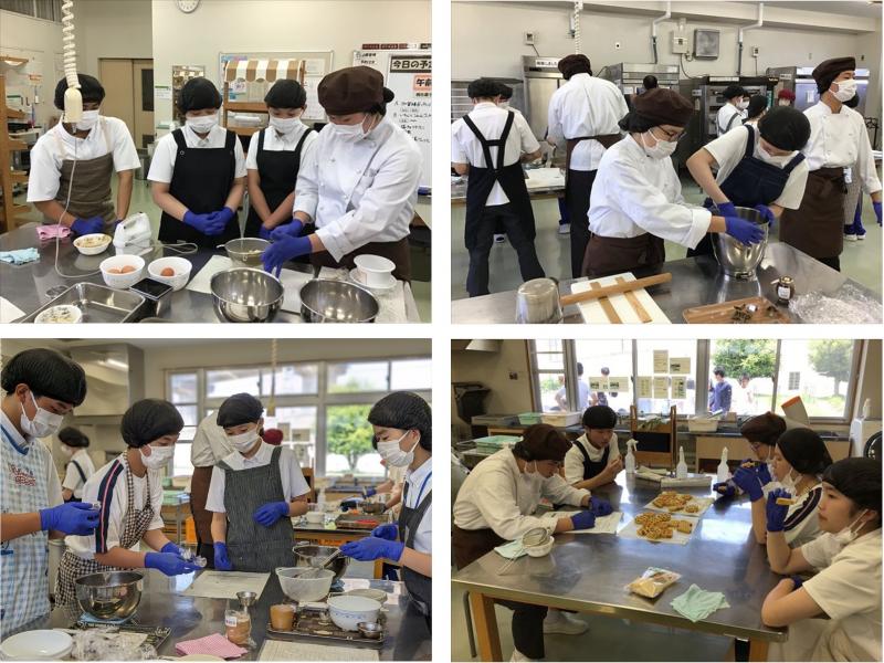 第3回目はグループで考えた焼き菓子を試作しました。手順については、本校の生徒が向陽の生徒に教えながら一緒に試作を行いました。グループで製作、片付けを協力して行い、隙間時間には話をしたりして、活動をする中で少しずつ緊張がほぐれていく様子でした。