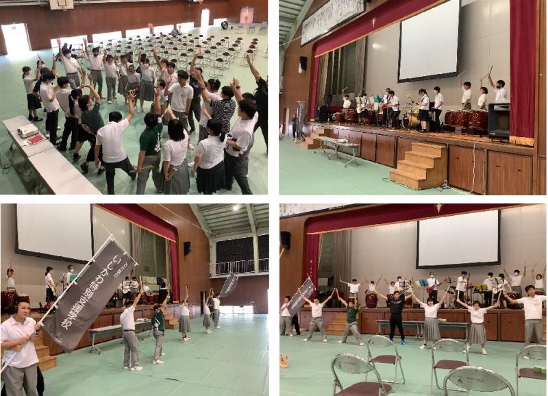 体育館では向陽高校生の声掛けで円陣を組みました。リハーサルでは、タイミングを合わせるところを繰り返し練習できました。