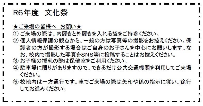 2024年10月29日 15時31分文化祭について、ご来場の皆様へのお願いです。