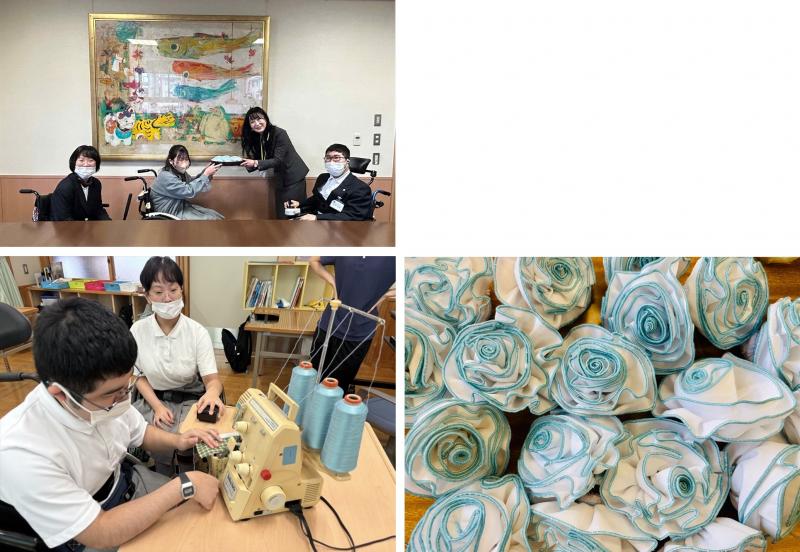 完成したものを校長先生、PTA会長さんにお届けしました。卒業式で皆さんの胸元に綺麗に咲くことを楽しみにしています!