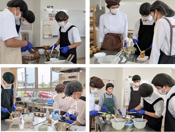 5月22日(木)・29日(木)にB高等部産業技術コースのフードデザイングループと、金沢向陽高校2年の家庭科「食品」選択の生徒1グループ14名、2グループ13名が、大場校舎食品加工室で共同学習を行いました。