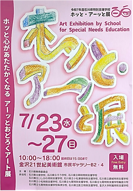 2025年7月25日 16時14分7月23日(火)より7月27日(日)まで、金沢21世紀美術館で「令和7年度ホッと・アーッと展」が開催されています。開場に先立ち、審査会が行われ、石川県内の特別支援学校に通う子どもたちの自由な発想で表現された作品群の中から、今年度の受賞作品が決まりました。