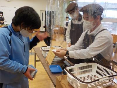 2022年1月20日 15時41分12月16日(木)に、B中Shopsがありました。作業学習で制作したペンケースや栽培したダイコン等を販売しました。また、高等部からのお菓子も販売しました。今回で、3年生が最後の店員ということで、引き継ぎのため、初めて2年生も店員として参加しました。
