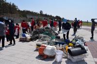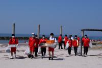 午後からは探究活動のグループごとに海岸清掃に参加しました。ポリタンクや漁網といった大きなごみから小さなマイクロプラスチックまで、様々なごみが集まり、用意していたトラック2台では運びきれず、さらに1台を追加していただきました。体験を通して得た気づきや感じたことを、今後の探究活動に活かしてくれることと期待しています。