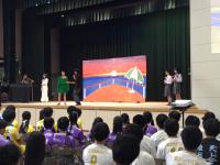 3年生全10クラスが、脚本、背景画、大道具・小道具、衣装、音響、すべて手作りしました。