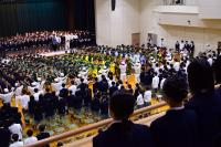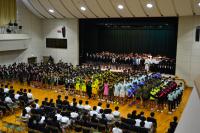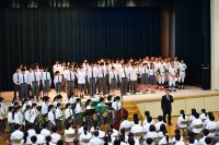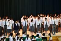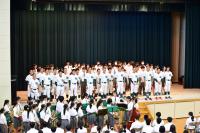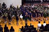 その後、1つ1つの部から力強い決意表明があり、応援団のリードのもと、全校生徒で校歌を歌いました。