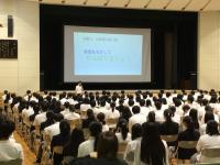 ことの大切さについて語られ、生徒は真剣に聞いていました。