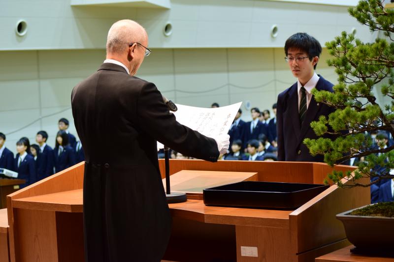これに先立ち9時より、卒業記念品目録贈呈式、生徒会自治活動と部活動の功労者表彰式、並びに一泉賞の授賞式が行われました。