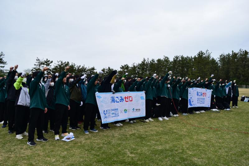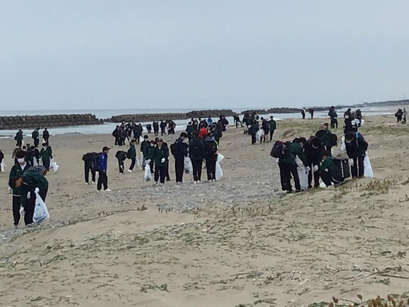 時折小雨が降る中、生徒たちはゴミ袋いっぱいになるまで海岸清掃に取り組み、改めて海洋ごみ 問題を深く心に受け止めていました。