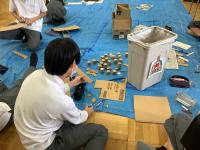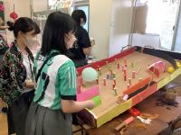 3階の各教室では1年生が教室催事の準備に取り組んでいました。大仕掛けのものから、細かいパーツの作成まで、それぞれのクラスの生徒が知恵を出し合っています。