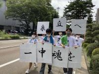 8月30日(火)一泉行列が行われ、本校の前身である「旧制金沢一中」があった本多町から、高校の校舎までの4.5kmを生徒、OB、教職員、合計約300名が歩きました。天候不良とコロナの影響で5年ぶりの開催です。