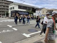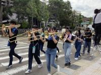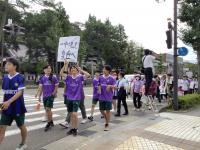 軽快な演奏で行列を盛り上げる吹奏楽部。校歌を歌う合唱部。思い思いのプラカードを掲げる生徒たち。この日を楽しみにしてくださっていたOBの方々。参加者は笑顔です。沿道には手を振ってくれる方も。交通整理をしてくださった警察の方を始め、多くの方のご協力で実施できましたこと、感謝します。ありがとうございました。