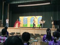 天気に恵まれた8月31日(水)、第74回創立記念祭が開催されました。8時30分、コロナ感染対策のため、各クラスの半数が講堂に集っての開会です。技術を駆使したコンピュータ部のオープニング映像。吹奏楽部の演奏には途中から先生方も歌やダンスで共演し、会場中は大いに沸きました。続く生徒会執行部が企画した泉丘クイズは難しく全問正解者は3年生1人のみ。書道部の書道パフォーマンスでは袴をはいた部員たちが大筆を使って迫力ある作品を仕上げていました。