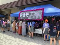 記念祭と言えば、模擬店。本校では2年生が担当します。主食・おかず系は焼きそば、ハンバーガー、お好み焼き、焼き鳥、たこ焼き、唐揚げの6店舗。スイーツ系はベビーカステラ、クレープ、チュロス、ワッフルの4店舗です。どのお店も試作を重ねての提供です。2日目は昨日の反省を踏まえ、商品をお渡しするまでの時間も短縮されていました。1日目にご迷惑をおかけした皆様申し訳ありませんでした。