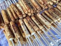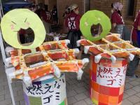 生徒の模擬店とならび、PTA「パパママレストラン」のハヤシライスと焼きちくわが好評でした。炭火で焼かれたちくわは、1本1本に焼き印が付くこだわりの一品です。
