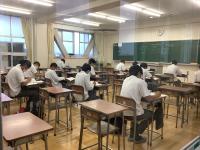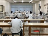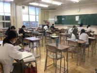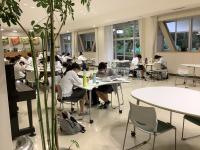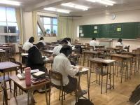 午後3時30分の校舎内の様子です。午前中で試験は終わっていますが、5階~3階の各クラスには、10名以上の生徒が自習しています。その他、2階の図書館、1階の生徒ホールと食堂でも、多くの生徒が勉強をしていました。静寂の中、懸命に課題に取り組んでいる生徒もいれば、問題を出し合っている生徒もいます。金曜日までの4日間。生徒たちはいつにも増して真剣です。