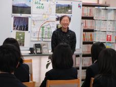 当日は、東北地方になじみの薄い私たちにも理解が深まるようにとの、岩手県の自然などの掲示物もまじえた丁寧なご説明の後、宮沢賢治の童話「セロ弾きのゴーシュ」、と詩「永訣の朝」他数編を読んでいただきました。