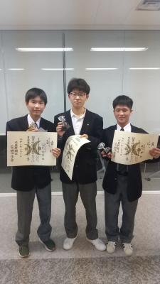 男子団体 優勝( 吉尾君(2年)・小早川君(2年)・畑君(1年))