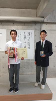 全国高校囲碁選手権大会 8月4日(木)~5日(金)に、個人(男子2人・女子1人)で出場。