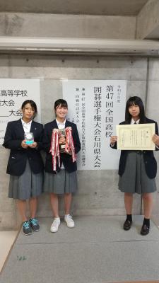 全国総文囲碁部門 8月1日(月)~2日(火)に、団体(男子2人・女子1人)で出場。