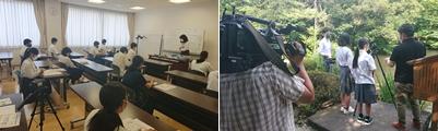 テレビ部門・ラジオ部門に分かれ、北陸放送で日々テレビ・ラジオの番組制作を行っている方を講師に、講義や実習が行われました。ラジオ部門では、優れた番組から技術を学ぶ講座が行われました。テレビ部門では、放送された番組をもとにした質疑応答の後、北陸放送松風閣に移動し、撮影実習が行われました。どちらの講座でも、積極的に質問を行い、学びを深めていました。