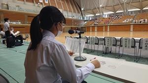 7月14日、いしかわ総合スポーツセンターで行われた「令和3年度全国高校総体等石川県選手団結団壮行式」の司会担当として生徒1名が参加しました。