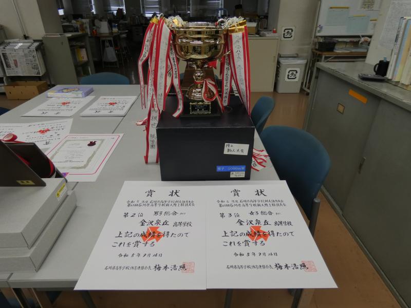 石川県高等学校 総合体育大会 (5月24‐26日) | 男子総合5位 男子トラック6位 男子フィールド3位 女子総合3位 女子トラック4位 男子400mH 杉本 壮(37H) 優勝 男子棒高跳 村 正樹(37H) 優勝 女子400mH 日吉 美智(39H) 優勝 男子110mH 杉本 壮(37H) 7位 男子棒高跳 加治 直紘(19H) 2位 男子棒高跳 山岸 史弥(20H) 3位 男子三段跳 西村 有生(27H) 5位 男子4×100mR 4位 (成岡 寛太(32H)‐杉本 壮(37H) ‐窪田 剛大(20H)‐田丸 貴大(39H)) 男子4×400mR 4位 (田丸 貴大(39H) ‐杉本 壮(37H) ‐浦本 雄史(33H)‐窪田 剛大(20H)) 女子100m 亀田 早彩(21H) 6位 女子200m 亀田 早彩(21H) 7位 女子400m 日吉 美智(39H) 2位 女子走高跳 山田 真帆(34H) 4位 女子棒高跳 土山 菜苗深(27H) 8位 女子三段跳 高桑 志依(33H) 5位 女子円盤投 佐藤 桃佳(26H) 6位 女子4×100mR 3位 (坂本 莉彩(15H)‐日吉 美智(39H)‐亀田 早彩(21H)‐大家 日向里(24H)) 女子4×400mR 3位 (岩本 奈夕(26H)‐吉江 美翔(24H)‐高桑 志依(33H) ‐日吉 美智(39H)) | |
