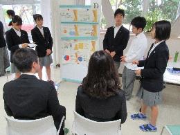 3年SGコース成果発表会が7月12日(金)に開催されました。34Hの生徒40名が、1年半進めてきた課題研究の集大成として、東京外国語大学・金沢大学の外国人留学生に対して英語でプレゼンテーションしました。発表会では、プレゼンに加え、質疑応答も英語で行われ、生徒はこれまでの研究を踏まえ、グループで協力して質問に答えていました。参観者からは「プレゼンテーションのスキル、特に表情が良かった」「質疑応答を英語でしており驚いた」「発表の内容が論理的で多角的な視点から考察されていた」「生徒が積極的に運営に参加しようとする姿勢が感じられた」「司会も堂々としていた」など多くの高い評価をいただきました。