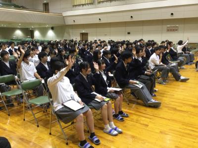 講演会には170名の生徒が参加しました。講演の後に行われた質疑応答では、さまざまな質問が飛び交いました。