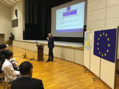 10月30日(水)放課後に、駐日リトアニア共和国特命全権大使のオーレリウス・ジーカス氏をお招きし、講演会を開催しました。EUの成り立ちや今日の世界で果たしている役割、EUやその加盟国が持つ多様性に満ちた歴史や文化について、またEUと日本との関わり、国境の枠を超えた平和構築や開発援助の現状について学ぶことができました。