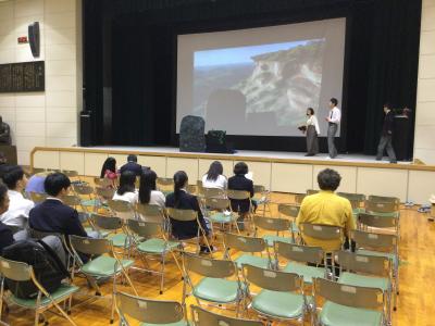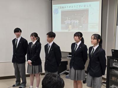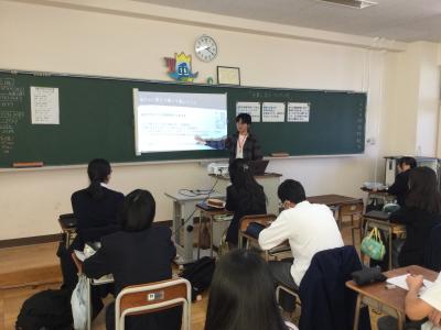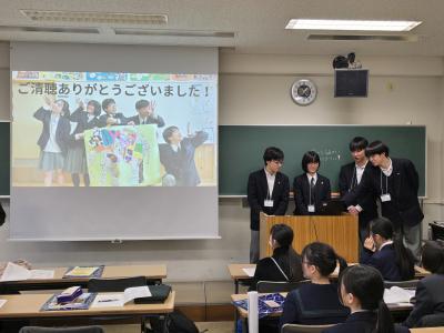 (生徒感想)4人の先輩方のプレゼンを聞いて、最初に大まかな流れを説明したり、ところどころにユーモアをいれたり、わかりやすい言葉で話したりすることがプレゼンの効果的な方法だと思いました。全員全く異なる分野を突き詰めて学んでいることがわかり、大学では自分の好きなことだけをとことん学べることを実感し、大学生活が楽しみになりました。しかし先輩たちも壮絶な受験勉強を乗り越えたからこそ楽しい大学生活が送れているのだと思うので、自分も勉強のモチベーションを上げて頑張っていきたいと思いました。