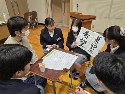 (生徒感想)グローバル化が著しく、海外の人たちとの交流が増えていく中でどういったことを今のうちから大切にしていけばいいのかが分かった。相手の話をしっかり聞いて相手とディスカッションをできるようになることや自分のアイデンティティについて相手に説明できるようにしておくこと、話し合いの場などで求められるリーダーシップが大事だと思った。好きなことを見つけるときには色々な手段で情報を集めて自分がしたいことを表現できるようにしておきたいと思った。