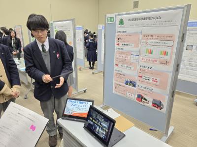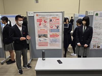 本校からは2年SGコースと普通コースの生徒たちが参加し、決められたテーマに基づいた分科会会場で発表を行いました。生徒たちは、年明けからいくつかの発表会を経験してきていたため、より洗練されたプレゼンテーションスキルを身につけてきており、余裕を持って発表することができたようでした。また、発表がない時間帯には、他校の発表を聞く機会もあり、高校生同士がお互いに刺激し合うことができました。