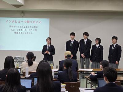 ・学年、クラスの違う人たちと探究について話すことはすごく楽しかったし、今の1年生は私たちが1年生のときと結構違うことをしていて、その話を聞くのがすごく楽しかった。探究の話だけでなく学校生活の話もできて学びある時間になった。講堂発表は緊張したが、班のみんなと楽しくできてよかった。これからの探究でも班員と協力してやりたいという気持ちが大きくなった。とてもいい一日だった。
