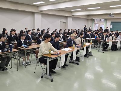 1年生を対象に行われた「先輩に学ぶプレゼン術」では、東京大学、金沢大学、名古屋大学、三重大学、京都大学、神戸大学で学んでいる卒業生12名が登壇し、プレゼンテーションを通じて「大学での学びと自分の将来」について自身の経験を語りました。1年生は、これらの先輩たちの話を通じて、大学生活やキャリアの歩み方に対する新たな視点を得ることができ、彼ら自身の未来に対する意識が一層深まったようです。