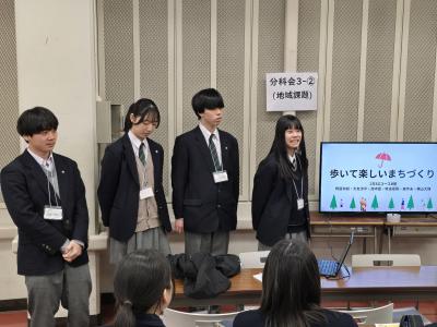 A班:居場所〔中高生の居場所づくりに関する研究〕 B班:観光〔歩いて楽しい街づくりに関する研究〕