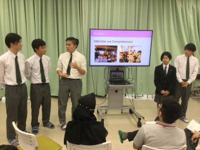 今回はその探究活動の内容にグローバルな視点を加味して、英語でプレゼンテーションを行いました。