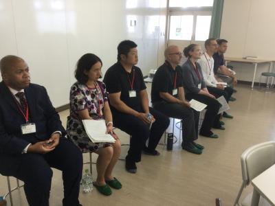7月25日(火)の午後からアメリカのマンスフィールド財団のフェロー9名を本校にお招きしました。マンスフィールド財団は、毎年アメリカの政府機関に勤める職員を日本に派遣しています。フェローのみなさんの所属先は、米国空軍、米国海軍、食品医薬品局、エネルギー省、国土安全保障省、商務省、NASAです。