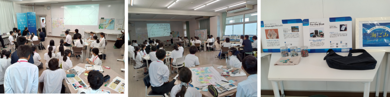 令和6年7月実施の「第3回 Earth Mileフォーラム」は、金沢大学理工学域生命理工学系海洋生物資源コースの竹内裕先生にも協力いただき、アップサイクル作りにも取り組んだ。また、同志社小学校の生徒も参加し、活動内容を紹介していただいた。