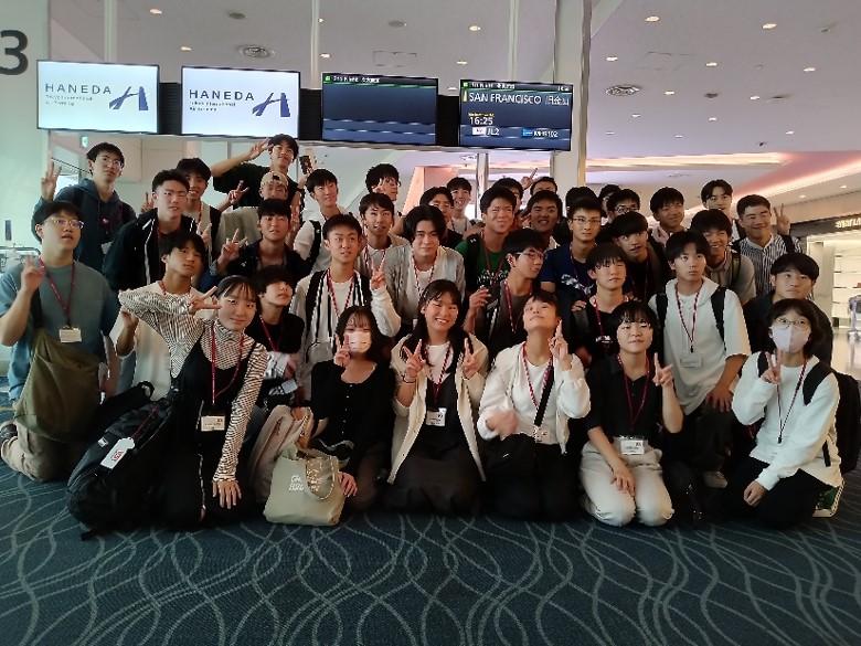 現地の10/7(土)の早朝にHFとお別れをして、サンフランシスコ国際空港へ向かいました。特別なお別れの儀式はありませんでしたが、ホストファミリーのお子さん(小学生くらいの男の子)は。「一緒に日本に行きたい!」とか「帰ってほしくない!」など、嬉しい言葉もかけてくれていました。もちろん、理数科のみんなも「まだいたい!」「1週間は短すぎる!」などと名残惜しい様子でした。