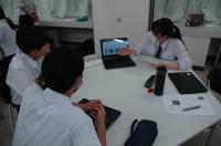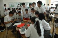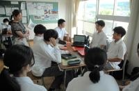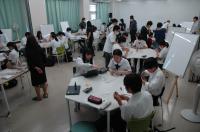 理数科2年生が、7月12日(水)の6・7限目に大会議室と視聴覚室で、研究ディスカッションを行いました。スライドの他、実験器具や材料を使って説明する班もあり、様々な工夫がみられました。また、6限目は理数科1年生が、7限目は理数科3年生が参加し、ディスカッション形式で議論しました。研究内容についての鋭い質問が飛び交い、先輩からアドバイスをもらう場面もあり、大変有意義な時間となりました。