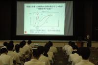 9月24日(金)の5・6限に、金沢医科大学の八田稔久教授による特別講義を開催しました。演題は「母体と胎児をむすぶ分子の絆~胎盤と脳の関係、その破綻~」で、講義中に先生が問題を出し、生徒が回答する方式の講義でした。胎盤が実はウイルス感染によって得られたものであるということや、胎盤が脳を発達させたこと等、様々なお話しをしていただきました。