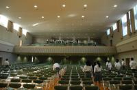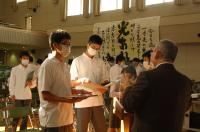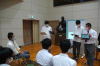 科学実験②・・・前日に作成した滑空飛行体の調整作業を行い、各自が作成した機体について工夫した点や特徴等をプレゼンしました。その後は講堂へ移動し、2階席の後部から機体を飛ばしてその飛距離を競いました。真っすぐ飛ばすことは中々難しかったようです。